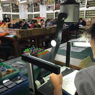 BIO現場用學校的水平投影機,直接邊畫邊跟學生講解,塗鴉的字體可以有什麼樣的變化,讓學生們都嘖嘖稱奇。
